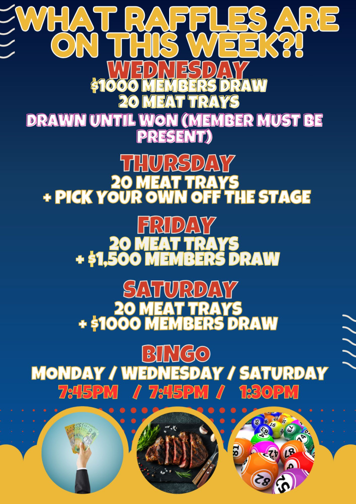 *WINNER MUST BE PRESENT FOR ALL MEMBERS CASH DRAWS TO CLAIM PRIZE*